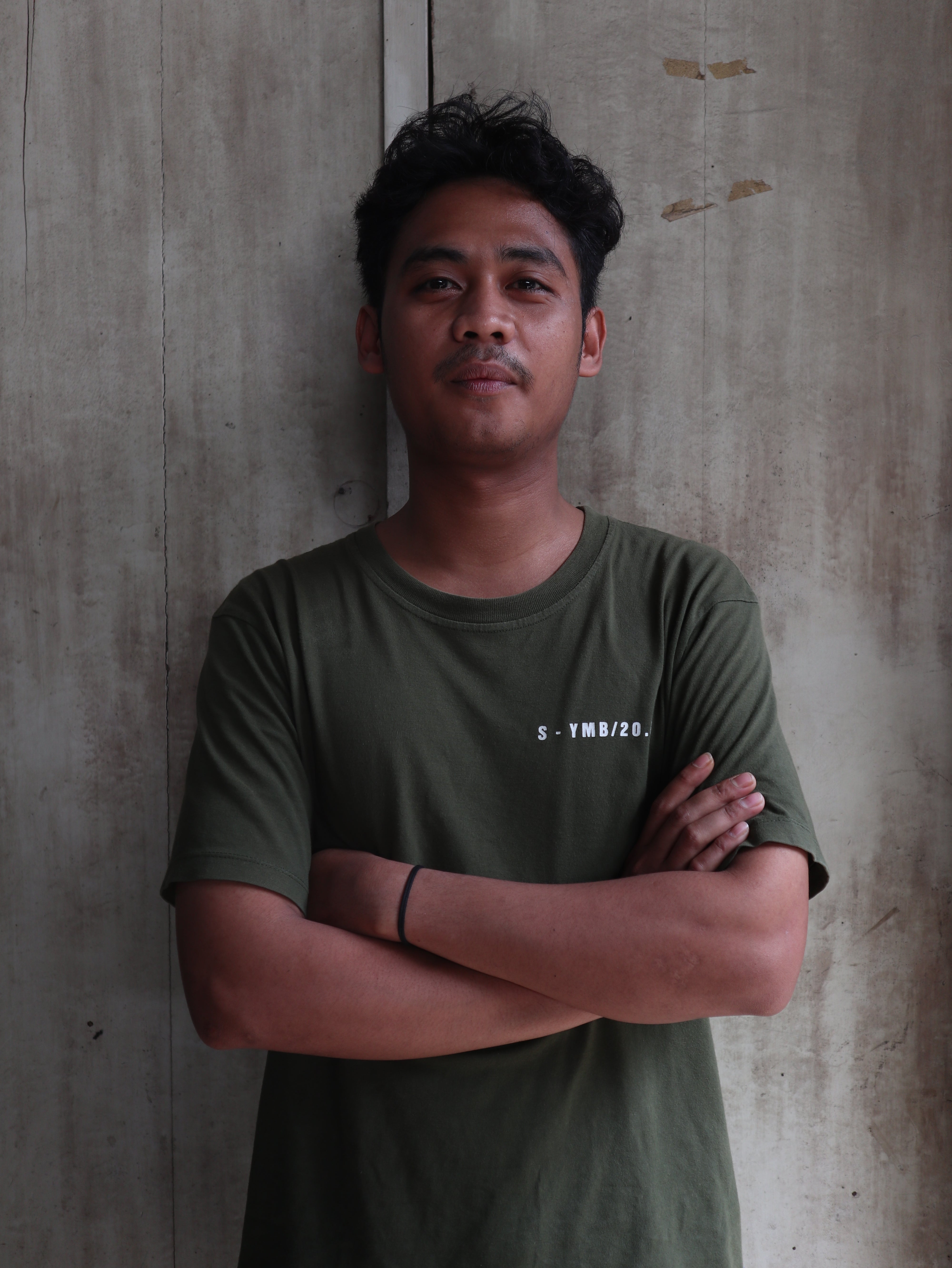 Our youngest artisan, Ridho, brings youthful energy and incredible artistry to Mondiette. With a background in architectural and interior design and a national calligraphy competition under his belt, his creativity shines through in every sketch and shell-crafted piece.